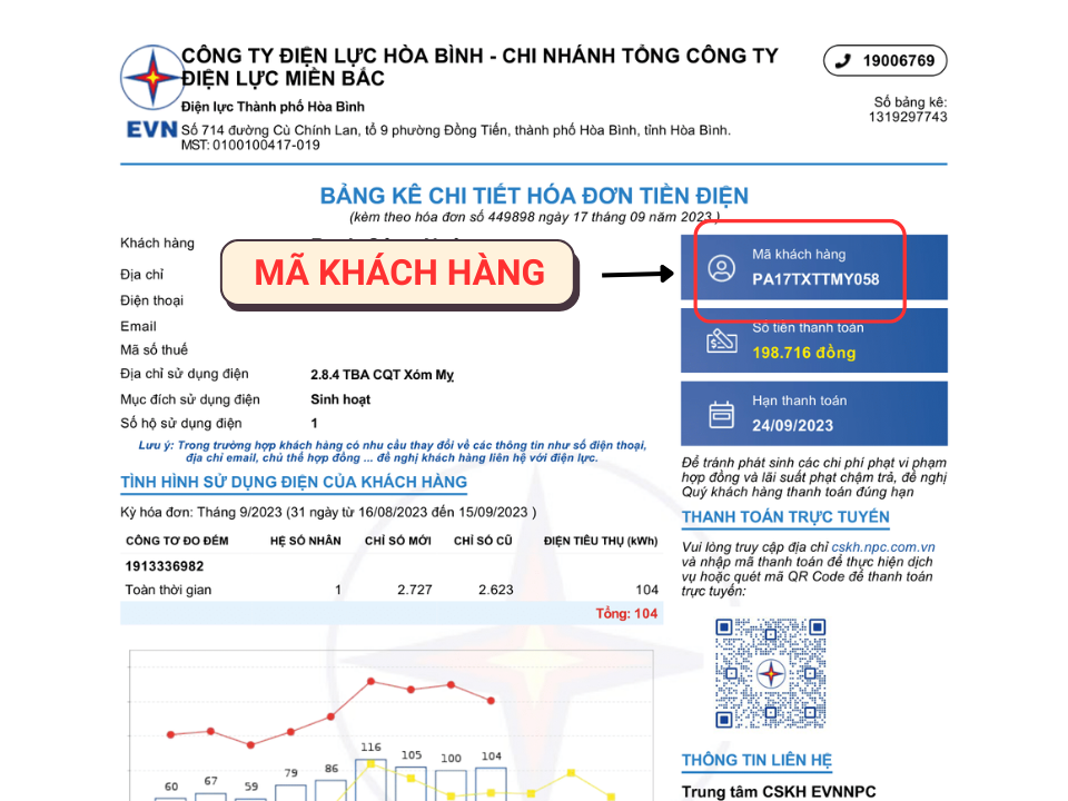 Mã KH ghi trên Hóa đơn tiền điện