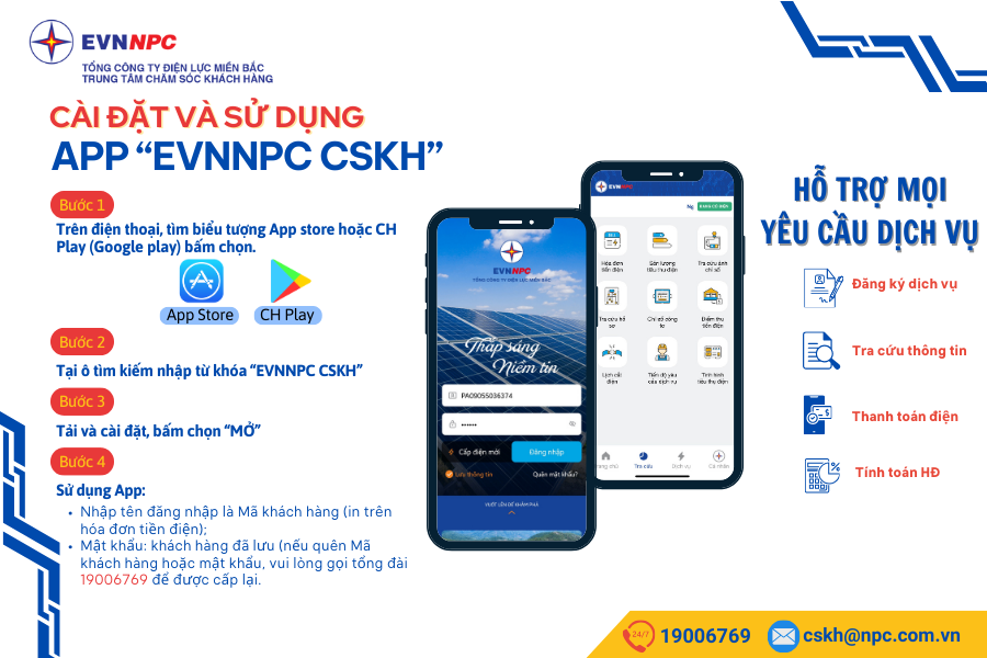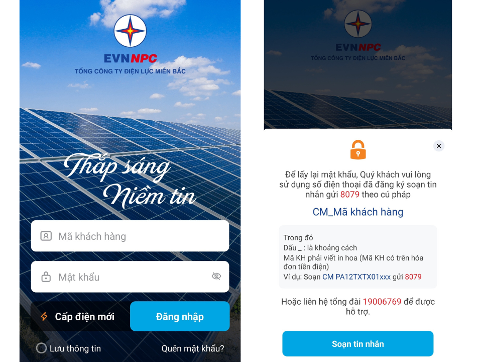 Nhiều khách hàng đã tải, cài đặt ứng dụng APP Chăm sóc khách hàng (có địa chỉ tìm kiếm trên AppStore hoặc CH Play: EVNNPC CSKH) về máy điện thoại của cá nhân. Đến bước đăng nhập vào hệ thống thì không nhớ tên đăng nhập hoặc mật khẩu.