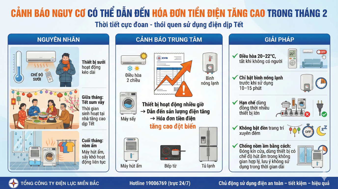 Cảnh báo hóa đơn tiền điện tháng 2 có nguy cơ tăng cao động biến
