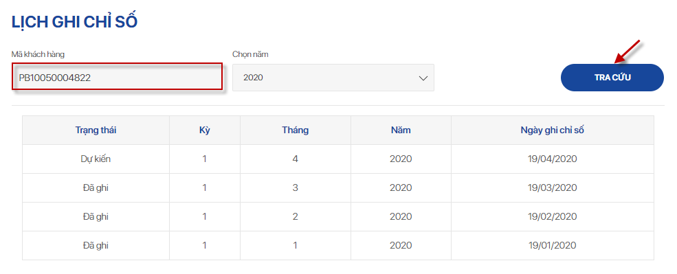 Khách hàng điền mã Khách hàng và chọn năm cần tra cứu và bấm vào “TRA CỨU”