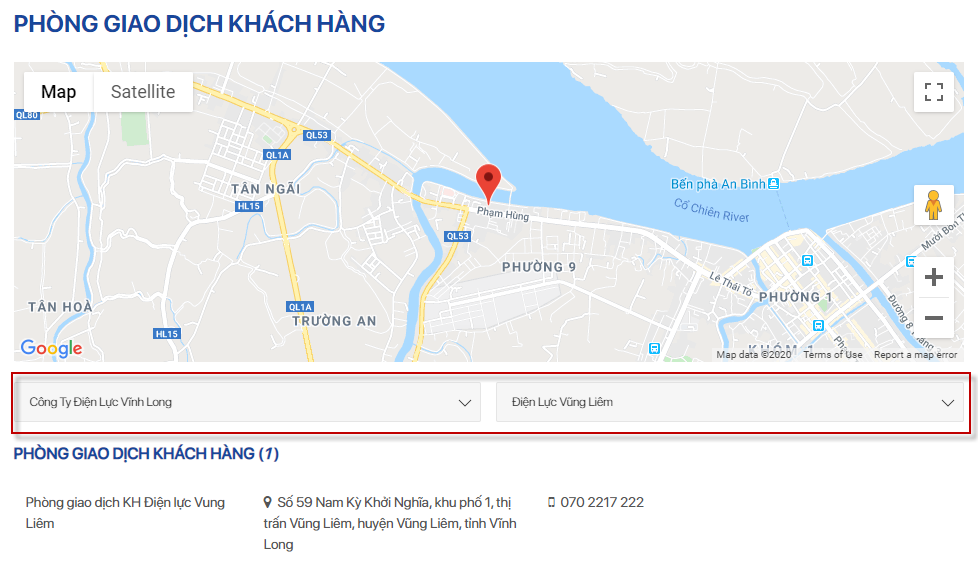 Để tra cứu phòng giao dịch Khách hàng cần chọn đúng công ty Điện lực và Điện lực, hệ thống sẽ tự động hiển thị thông tin mà Điện lực có