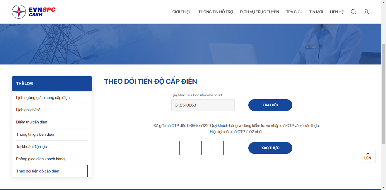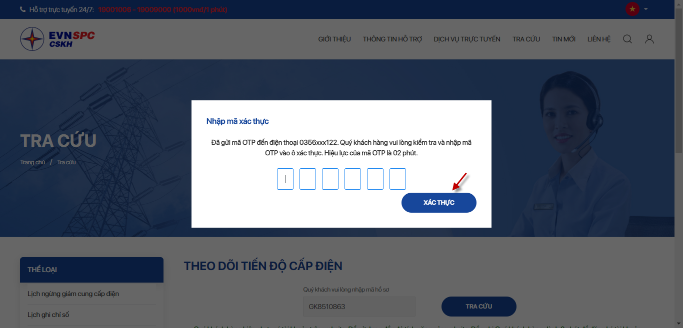 Khách hàng nhận được mã OTP điền vào phần xác thực trước khi hết hiệu lực, một mã OTP có thời gian hiệu lực trong 06 phút.
