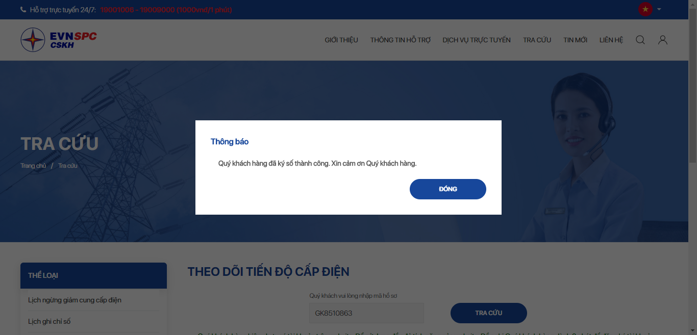 Khách hàng cần nhập mã yêu cầu bắt đầu là GK…. Và bấm vào “TRA CỨU”