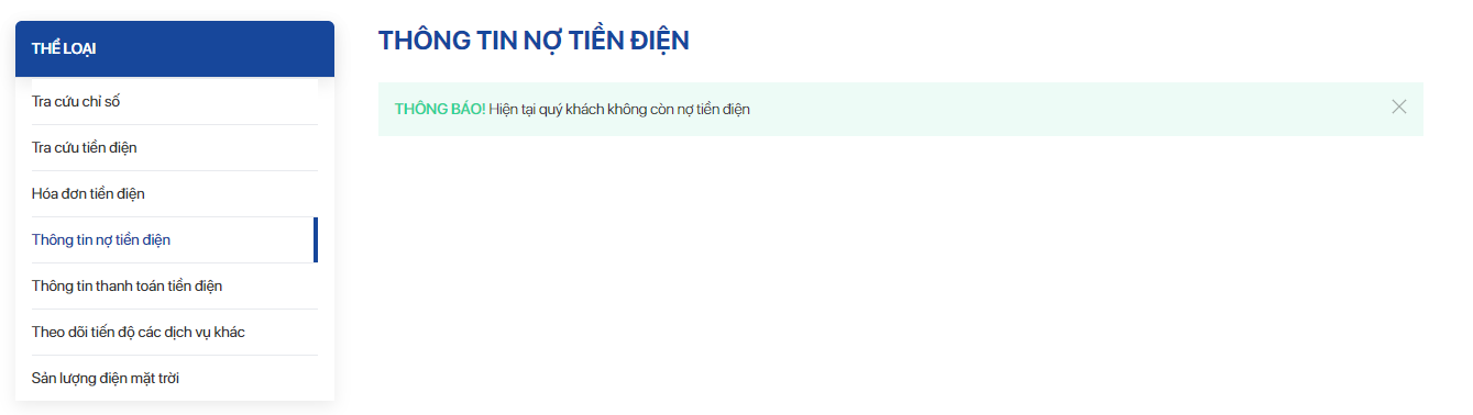 Khách hàng vào đây để kiểm tra thông tin nợ chưa thanh toán