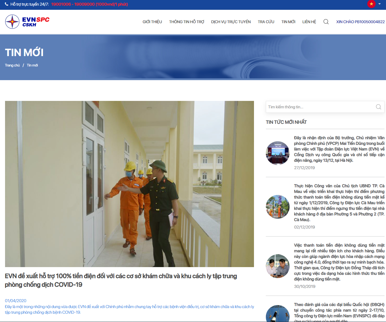 Các thông tin mới nhất sẽ được đưa lên trong phần tin tức, chia ra 4 phần: tin mới, an toàn điện – tiết kiệm điện, tri ân khách hàng, cung ứng điện 2020
