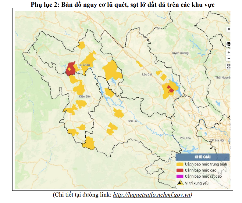 Tin cảnh báo lũ quét, sạt lở đất, sụt lún đất do mưa lũ hoặc dòng chảy trên khu vực các tỉnh Lai Châu, Điện Biên, Sơn La và Lào Cai