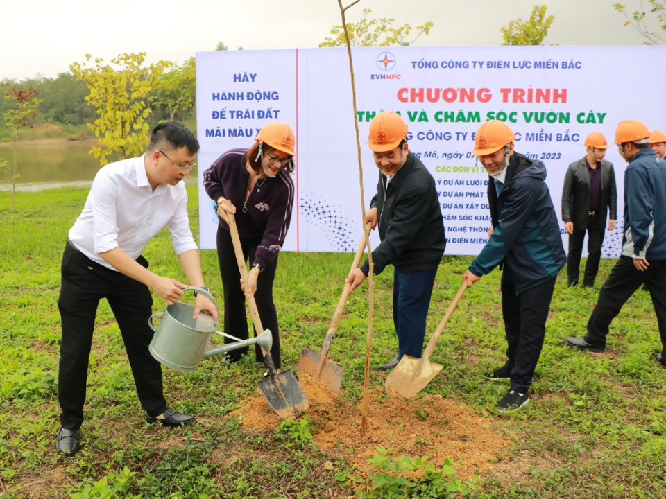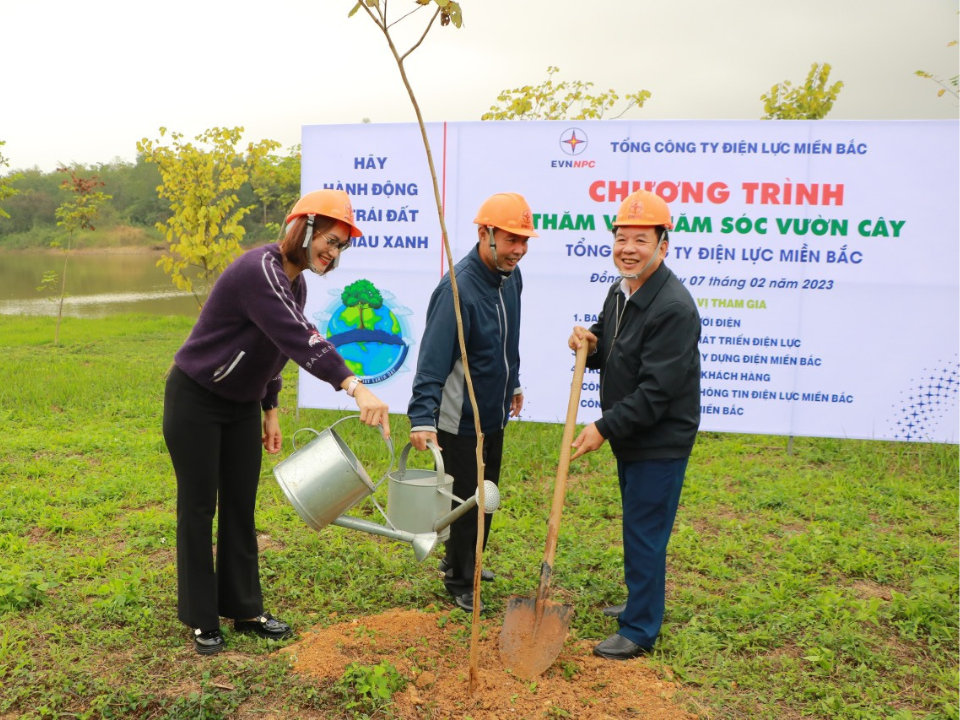 Hưởng ứng phong trào “Tết trồng cây” Xuân Quý Mão năm 2023 do Công đoàn Tổng công ty Điện lực miền Bắc (EVNNPC) phát động, ngày 07/02/2023, Trung tâm Chăm sóc khách hàng - Chi nhánh Tổng công ty Điện lực miền Bắc (TTCSKH) cùng 05 đơn vị là Ban QLDA Lưới điện - Ban QLDA phát triển Điện lực - Ban QLDA Xây dựng điện miền Bắc - Công ty Công nghệ thông tin Điện lực miền Bắc - Công ty tư vấn điện miền Bắc đồng tổ chức chương trình thăm và trồng cây tại Làng Văn hóa - Du lịch các dân tộc Việt Nam (Đồng Mô, Thị xã Sơn Tây, TP Hà Nội). Theo đó, 06 đơn vị thực hiện chăm sóc gần 200 cây xanh đã được trồng năm 2021 và trồng thêm gần 100 cây mới với thông điệp “Trồng thêm một cây xanh là thêm một hành động bảo vệ môi trường”.