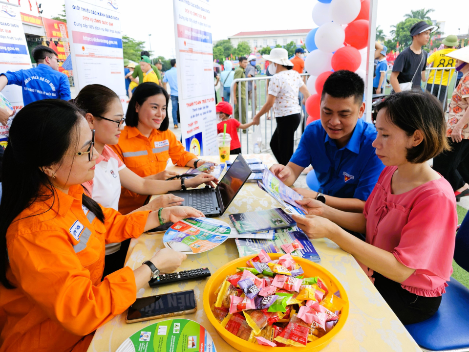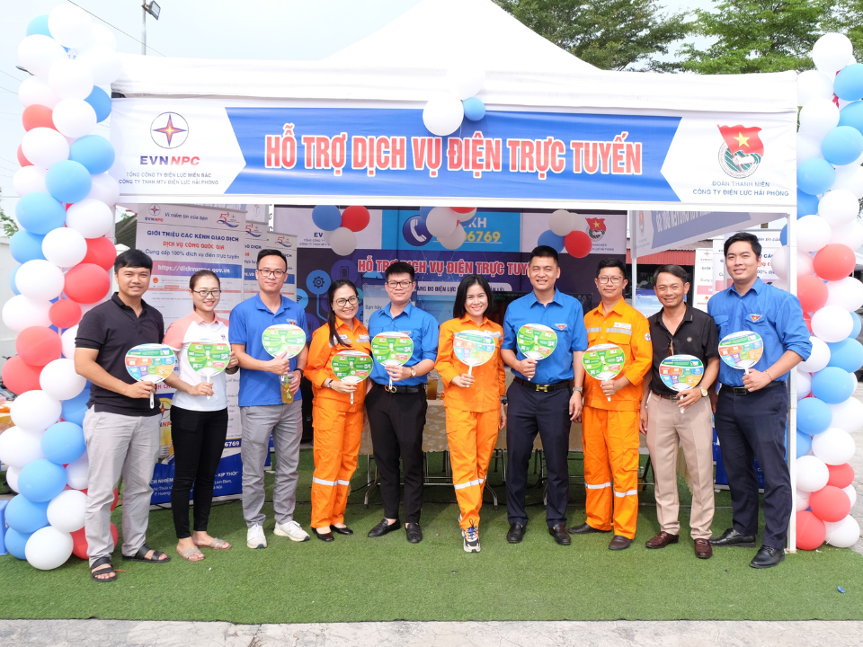 Tại sự kiện, Chi đoàn TTCSKH đã phối hợp cùng Đoàn thanh niên PC Hải Phòng lắp đặt quầy thanh niên Hỗ trợ dịch vụ điện trực tuyến. Tại đây khách hàng được các đoàn viên, thanh niên tư vấn trực tiếp về dịch vụ điện trực tuyến, phát miễn phí quạt giấy, tờ rơi hướng dẫn khách hàng sử dụng điện an toàn, tiết kiệm và hiệu quả, chung tay “Tiết kiệm điện thành thói quen”. Cùng với đó, khách hàng được giới thiệu các kênh CSKH của Tổng công ty điện lực miền Bắc đang hỗ trợ như: Số tổng đài 19006769, App CSKH “EVNNPC CSKH”, hệ thống Chatbot tự động qua Website, Zalo, Facebook CSKH, hướng dẫn khách hàng đăng ký nhận tin nhắn tiền điện và lịch cắt điện qua Zalo và tự thao tác thanh toán tiền điện trực tuyến… để khách hàng có thể giao dịch và được hỗ trợ các dịch vụ điện mọi lúc, mọi nơi trên nền tảng trực tuyến.