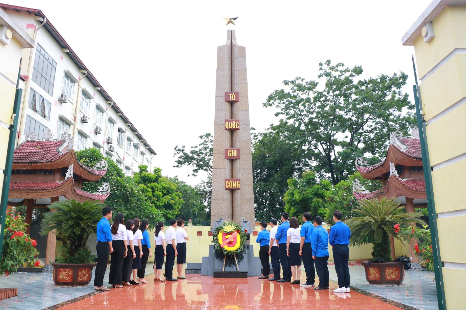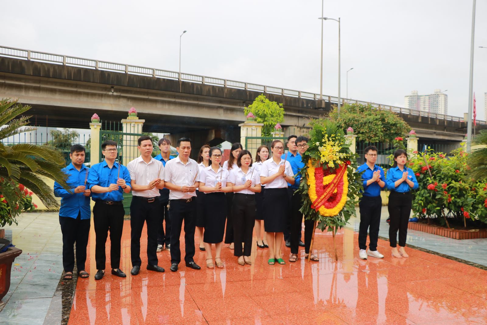 Đoàn thành kính dâng hương tưởng niệm các Anh hùng liệt sỹ tại Nghĩa trang liệt sỹ Phường Hoàng Liệt (Ảnh: Đăng Quang)