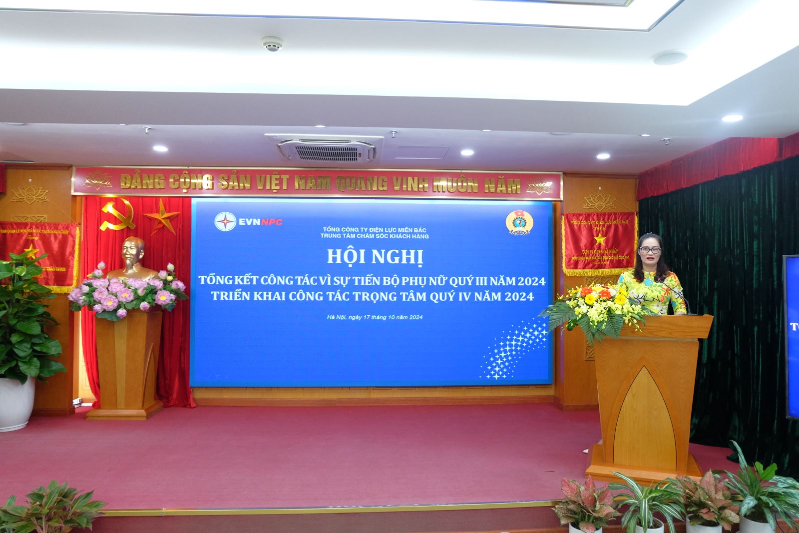 Ngày 17/10/2024, Trung tâm Chăm sóc khách hàng (TTCSKH) đã tổ chức Hội nghị tổng kết công tác vì sự tiến bộ phụ nữ (VSTBPN) quý III năm 2024; Triển khai công tác trọng tâm quý IV năm 2024 và Kỷ niệm 94 năm ngày thành lập Hội liên hiệp Phụ nữ Việt Nam (20/10/1930 - 20/10/2024) – Chào mừng ngày Phụ nữ Việt Nam 20/10.