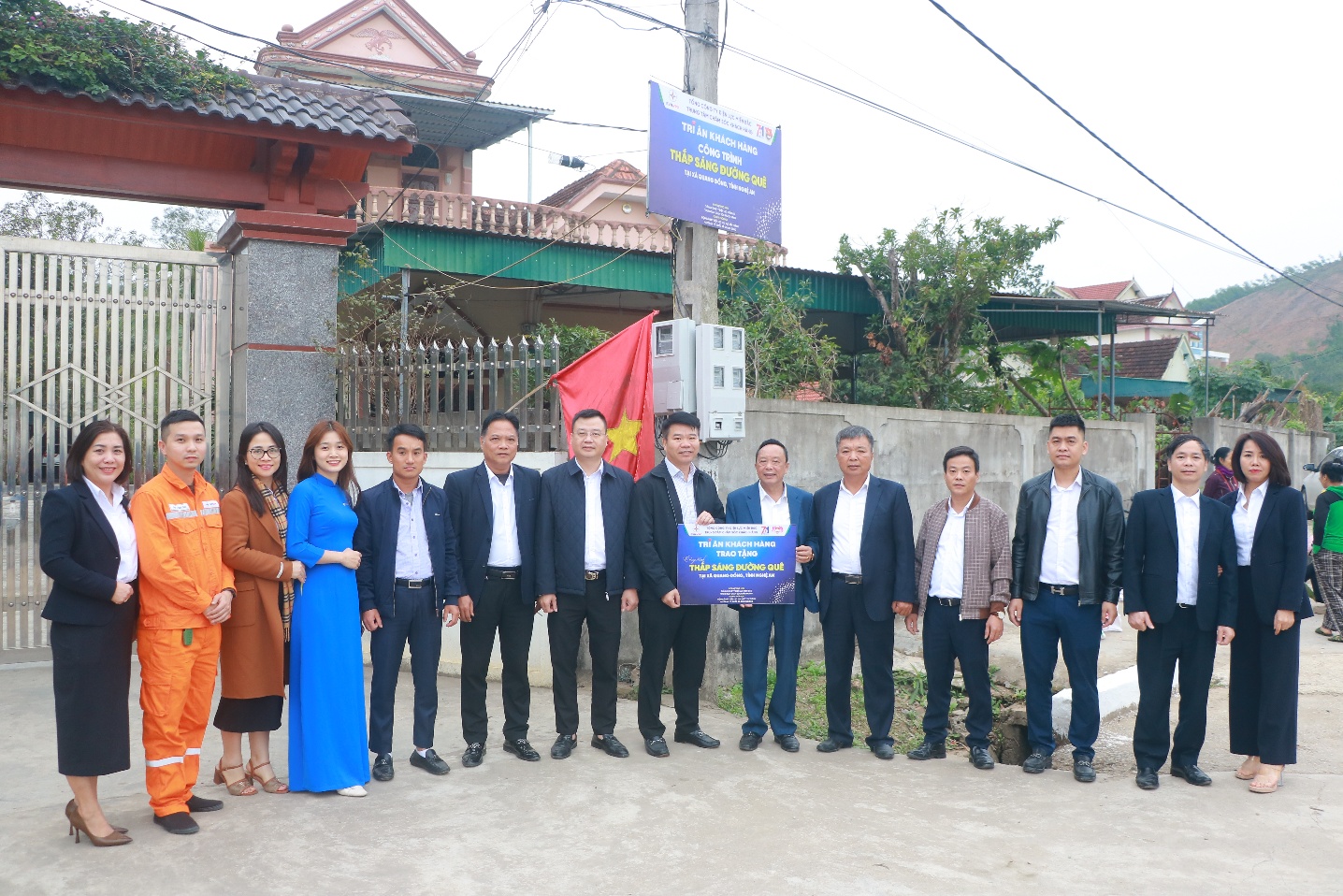 Song song với đó, Đoàn đã bàn giao công trình "Thắp sáng đường quê" do Trung tâm phối hợp với Đội Quản lý điện lực khu vực (QLĐLKV) Yên Thành thực hiện, góp phần chiếu sáng các tuyến đường thôn xóm, giúp bà con đi lại thuận tiện và đảm bảo an ninh trật tự.