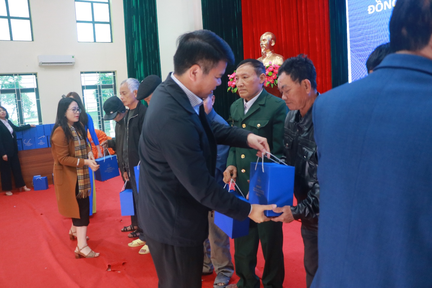 Về phía chính quyền địa phương xã Quang Đồng có ông Nguyễn Công Chúc – Bí thư Đảng ủy, Chủ tịch HĐND xã, ông Nguyễn Khắc Toàn – Phó Chủ tịch UBND xã, ông Phan Đức Tiến – Chủ tịch Ủy ban MTTQ xã, cùng đại diện các ban, ngành, đoàn thể và đông đảo nhân dân địa phương.Tại xã Quang Đồng một xã miền núi còn nhiều khó khăn, Đoàn công tác TTCSKH đã tổ chức thăm hỏi và tặng quà tri ân tới các khách hàng tiêu biểu, các gia đình thương binh, liệt sĩ và những hộ dân có hoàn cảnh khó khăn, đặc biệt là những hộ chịu ảnh hưởng của cơn bão số 10 (Bualoi) vừa qua tại địa phương. Những phần quà tuy nhỏ nhưng chứa đựng tình cảm, sự sẻ chia của cán bộ công nhân viên ngành điện đối với khách hàng.