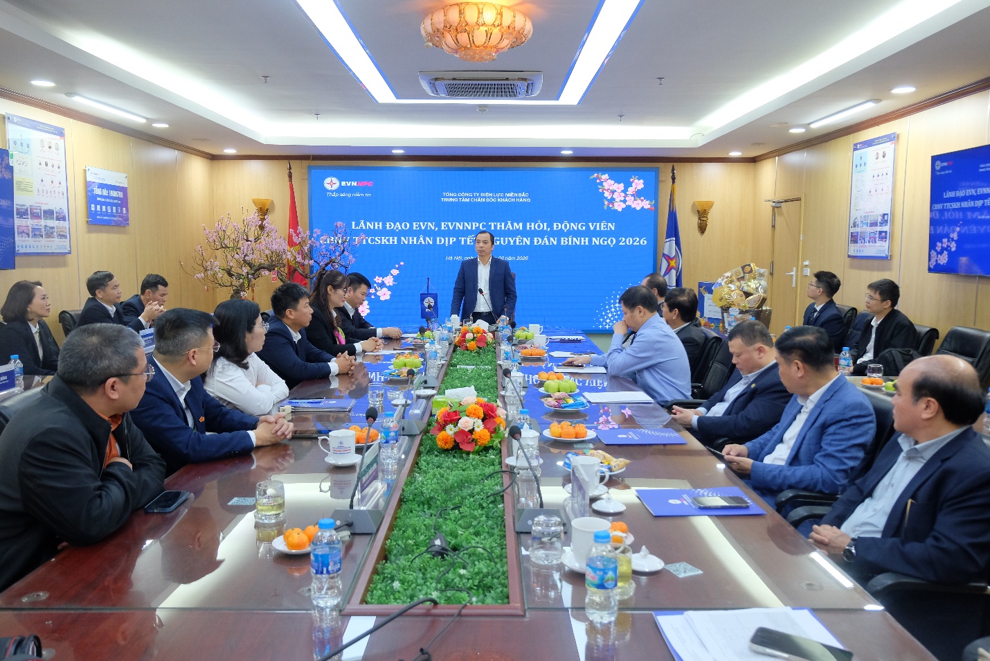 Trong không khí phấn khởi của những ngày giáp Tết, sáng ngày 12/02/2026, Lãnh đạo Tập đoàn Điện lực Việt Nam (EVN), Tổng công ty Điện lực miền Bắc (EVNNPC) đã đến thăm, động viên CBNV Trung tâm Chăm sóc khách hàng nhân dịp Tết Nguyên Đán Bính Ngọ 2026. Đoàn công tác có Ông Ngô Sơn Hải – Phó Tổng Giám đốc EVN; Ông Đỗ Đức Hùng - Chủ tịch Công đoàn Điện lực Việt Nam, Ông Đỗ Văn Năm - Thành viên Hội đồng thành viên EVNNPC, cùng đại diện Lãnh đạo các Ban chuyên môn của Tập đoàn và Tổng công ty.