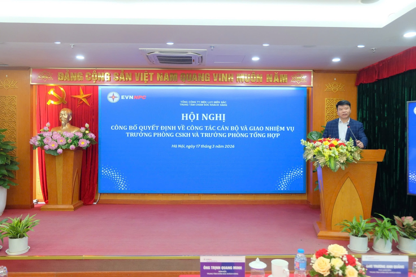 Trung tâm Chăm sóc khách hàng EVNNPC tổ chức công bố quyết định và giao nhiệm vụ cho Trưởng phòng CSKH và Trưởng phòng Tổng hợp