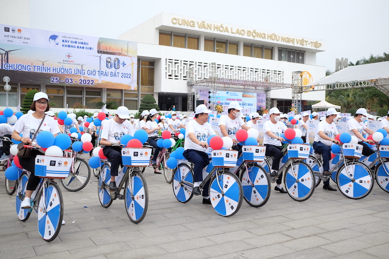 CBCNV EVNNPC đạp xe diễu hành tuyên truyền thông điệp của Giờ Trái đất 2022