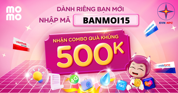 MoMo tặng bạn combo quà 500K cực đã khi thanh toán hóa đơn tiền Điện qua ứng dụng MoMo