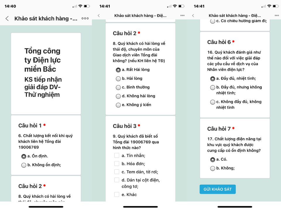 Trung tâm Chăm sóc khách hàng – Tổng công ty Điện lực miền Bắc chân thành cảm ơn Quý khách đã tin tưởng và đồng hành cùng Tổng Công ty Điện lực miền Bắc trong suốt thời gian vừa qua. Với mục đích nâng cao chất lượng dịch vụ, tiếp thu, lắng nghe ý kiến phản ánh của khách hàng, Trung tâm Chăm sóc khách hàng thực hiện khảo sát mức độ hài lòng của Quý khách khi sử dụng các dịch vụ điện: