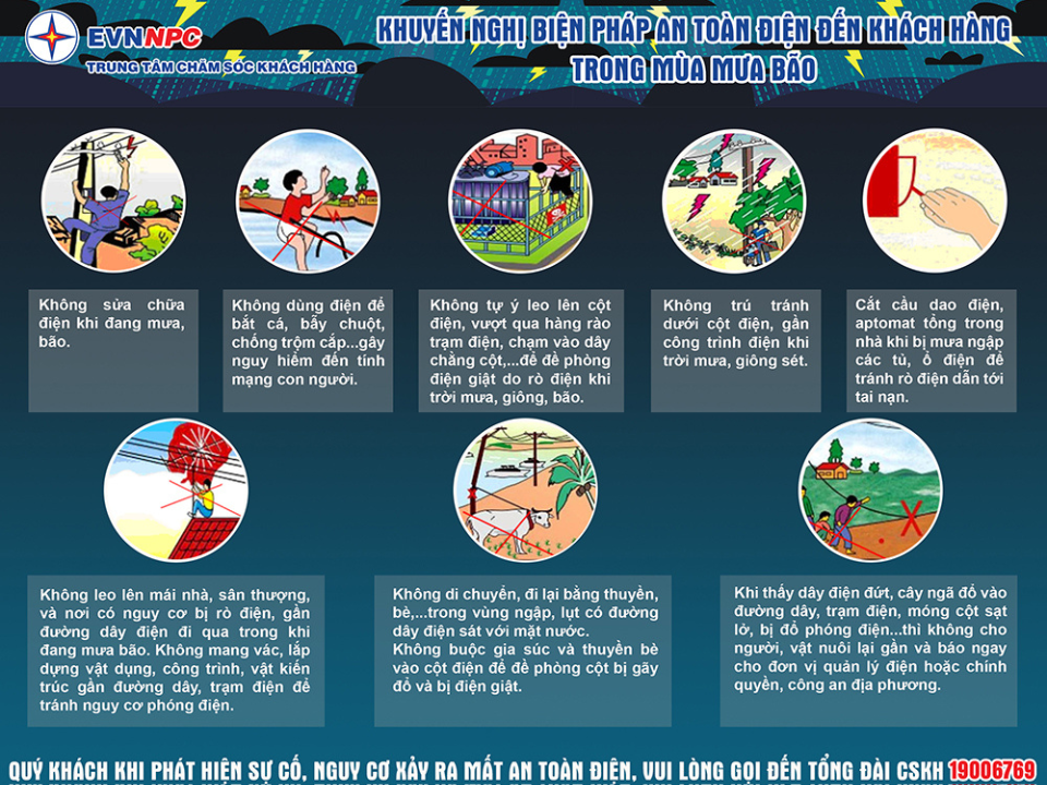 Trung tâm chăm sóc khách hàng khuyến nghị biện pháp an toàn điện trong mùa mưa bão