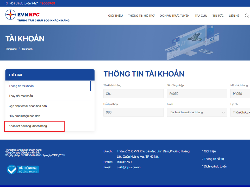 Khảo sát sự hài lòng của khách hàng qua Website Chăm sóc khách hàng – Phương thức nâng cao chất lượng dịch vụ khách hàng của EVNNPC