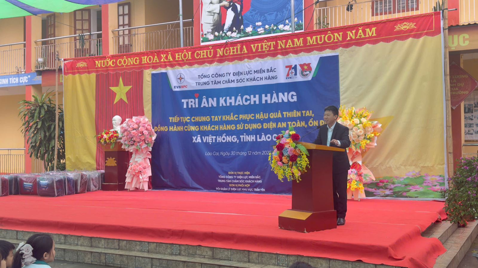 Ngày 30/12/2025, tại Trường Tiểu học và THCS Việt Hồng, xã Việt Hồng, tỉnh Lào Cai, Chương trình Tri ân khách hàng năm 2025 đã được tổ chức trong không khí ấm áp, gần gũi và đầy ý nghĩa. Chương trình là hoạt động thiết thực thể hiện sự trân trọng, biết ơn của ngành Điện đối với khách hàng đã luôn tin tưởng, đồng hành trong suốt thời gian qua.
